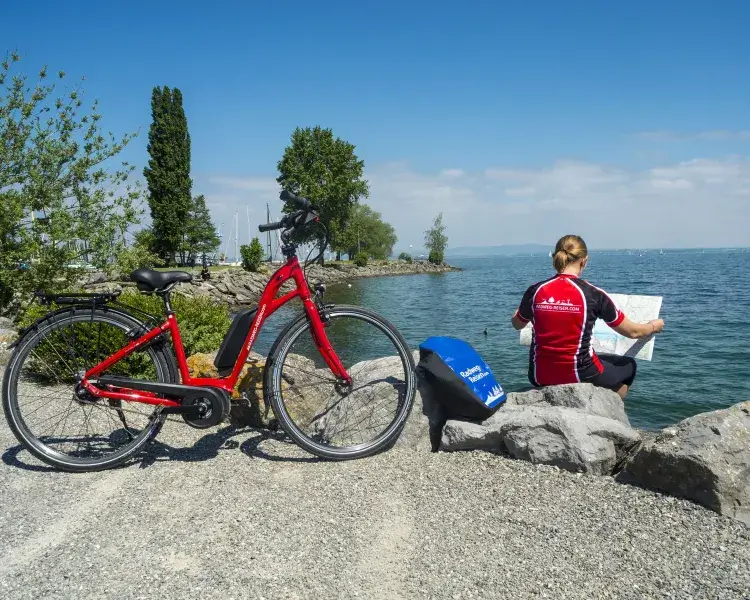 Comme tous les nouveaux collaborateurs de Radweg-Reisen, nous, c'est-à-dire Sarah (qui vit au bord du lac depuis 10 ans) et moi, Tanja (un vrai Seekind), avons pu explorer le lac de Constance à vélo. Notre premier tour s'est déroulé autour de l'Obersee, comme on appelle la partie située à l'est de la ligne entre Constance et Meersburg. Bien sûr, on y connaît quelque chose, mais nous avons vite constaté qu'on pouvait découvrir le lac de Constance à vélo d'une toute autre manière.